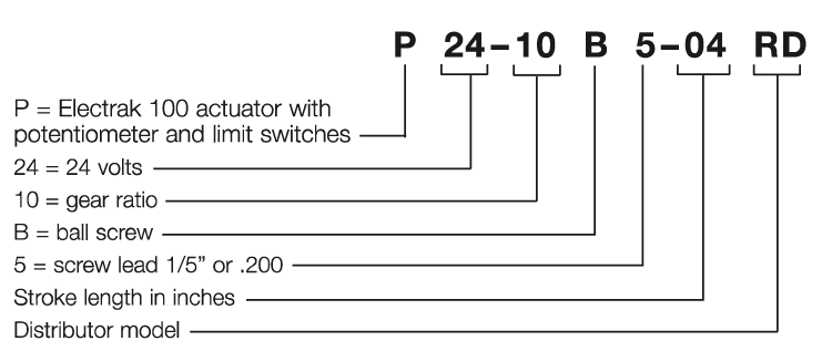 Actuator, Electrak 100, 24 Vdc, 500 Lbs Capacity, 8 in Stroke,1.3 in/s Travel rate,Ball Screw Screw drive